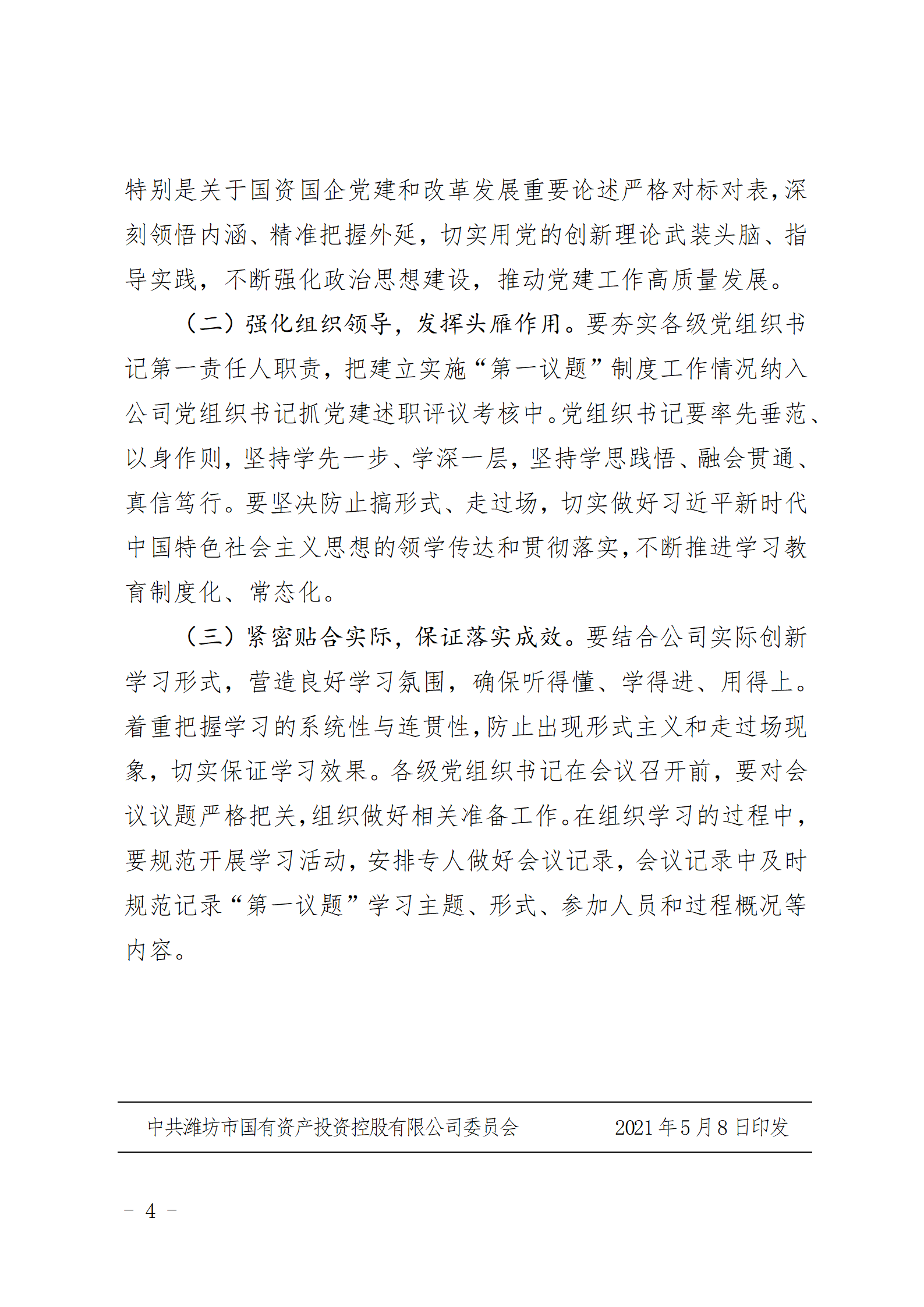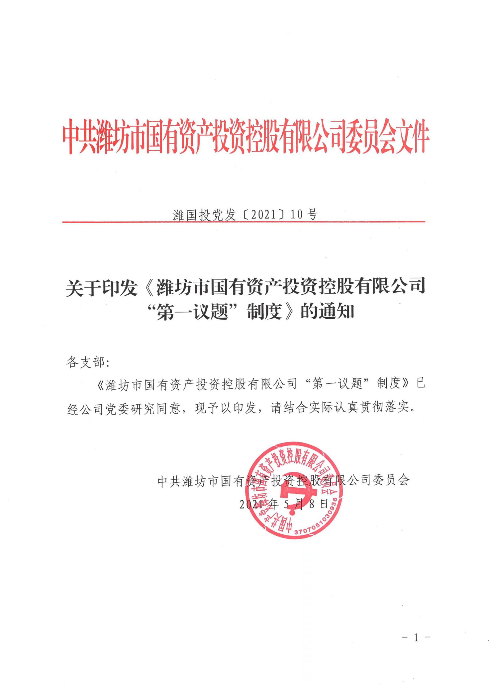 關于印發《濰坊市國有資產投資控股有限公司“第一議題”制定》的通知