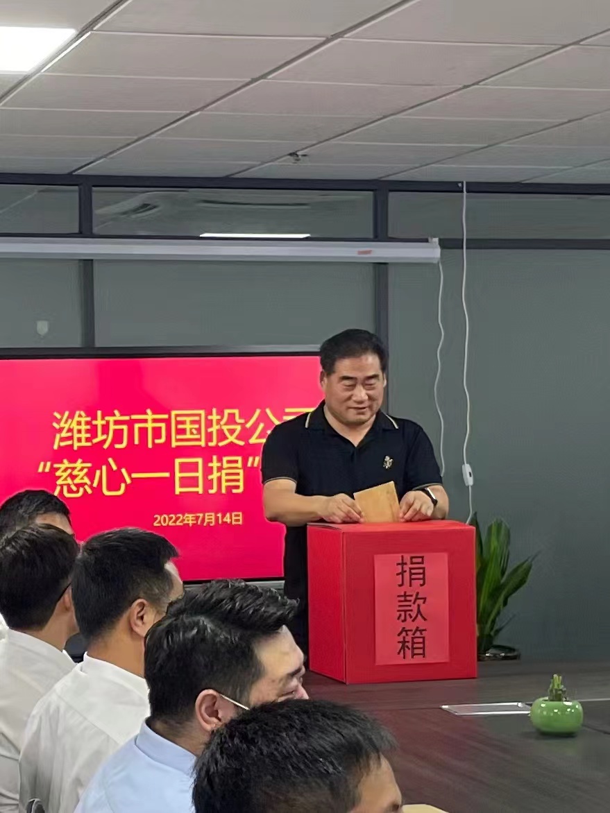 為進(jìn)一步弘揚(yáng)崇慈向善、扶貧濟(jì)困的傳統(tǒng)美德,7月14日下午,市國投公司開展“慈善一日捐”活動(dòng)。 活動(dòng)現(xiàn)場,公司班子率先垂范,帶頭參與,全體職工積極響應(yīng),踴躍捐款,依次將凝聚著愛心的善款投入箱內(nèi),共同為慈...