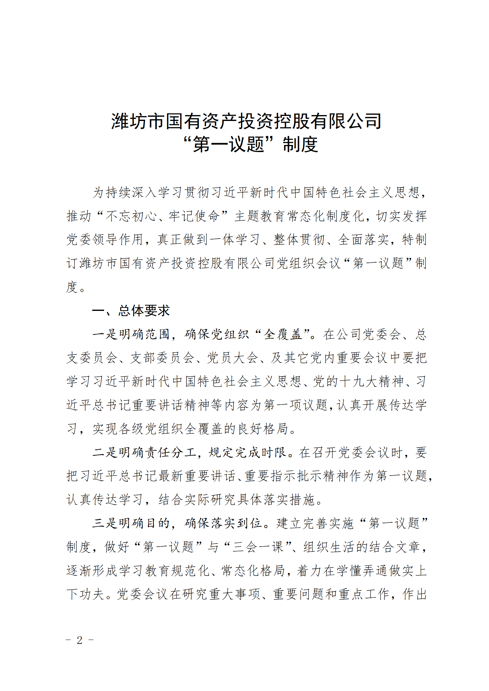 關于印發《濰坊市國有資產投資控股有限公司“第一議題”制定》的通知
